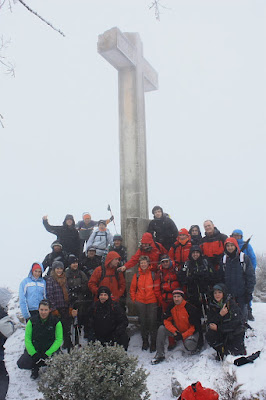 Llegamos a un colladito encima de Clavijo ( que no se veía por la niebla) y como siempre alguno se lió a bolazos.