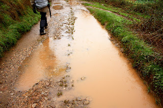 Según vamos llegando a Ezcaray, va arreciando la lluvia y al final si que hay un momento en que cae con ganas.
